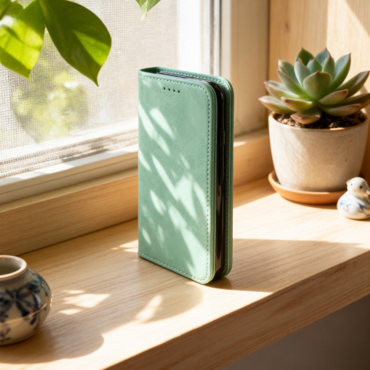 素材感を生かしたシンプルなデザインで、高級感があふれる手帳型ケース。
