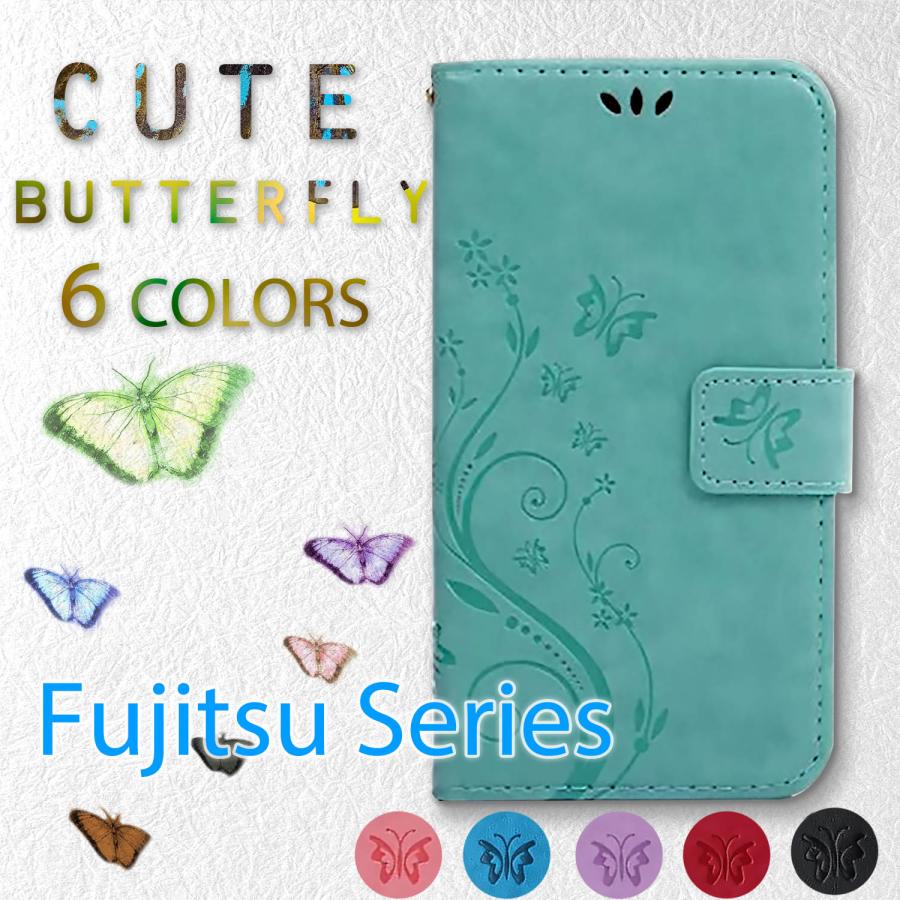 arrows we2 スマホケース 手帳型 arrowswe カバー アローズwe FCG02 F52E F51B FCG01 arrowsU arrowsJ 蝶 ピンク 緑 青 紫 赤 黒 レザー 革 カバー 富士通
